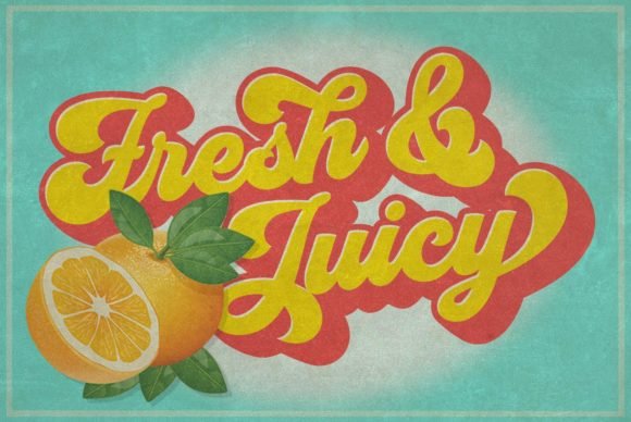 You can successfully use this font for bold logos, retro t-shirts, and impactful posters. It is also a fantastic fit for creative packaging, custom apparel, invitations, or vibrant social media designs that need a nostalgic touch. The main advantage of this vintage script font is its ability to blend classic elegance with modern fun seamlessly. It’s a masterfully designed tool that brings a timeless, groovy soul to any creative idea you have in mind.