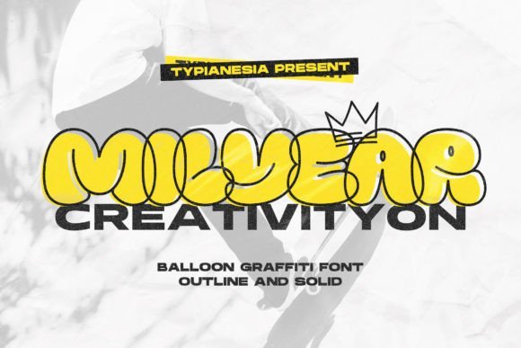 I’ve found this bubble graffiti font is an absolute gem for youthful product packaging, vibrant website headers, and artistic social media content. One of its best perks is the dual-style nature—you can switch between the solid version for bold impact or the outline style for a modern touch on posters and murals. If you’re looking to add a layer of urban flair to street-style banners or creative logos, Milyear Solid offers a seamless and visually satisfying experience every time.