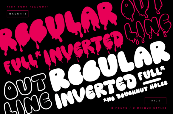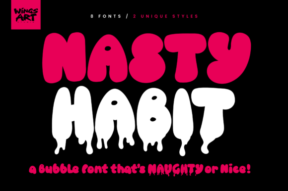 I’m honestly obsessed with how Nasty Habit can flip the script from “sweet” to “gritty” in a heartbeat. It’s a bubble graffiti font that feels like a cross between a classic street throw-up and a burst of juicy bubblegum. What makes it a personal favorite is the massive variety; with 8 styles ranging from clean, bouncy curves to “melted” versions that look like dripping ink, it gives me total creative freedom to decide exactly how “nice” or “naughty” I want the design to be.