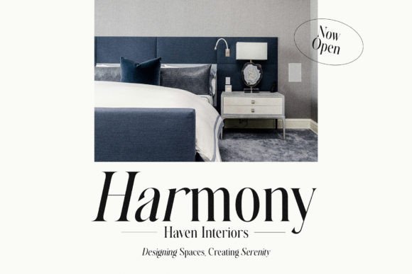 I rely on this modern serif font for editorial design, minimalist logos, luxury packaging, and beauty branding. It performs exceptionally well for advertising headers or refined wedding invitations where every detail matters. The way it balances timeless structure with contemporary flair makes it a go-to for interior design brochures or upscale social media graphics that need a touch of effortless class.